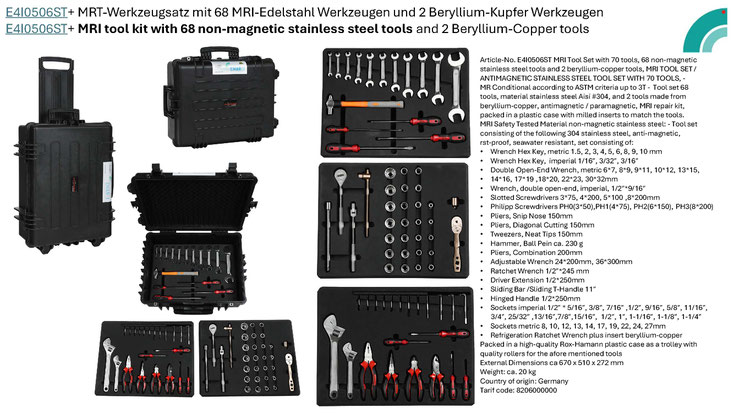 MRT-Werkzeugsätze und Einzelwerkzeug aus Titan, Edelstahl und Beryllium-Kupfer