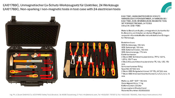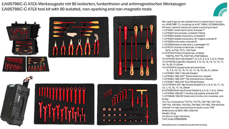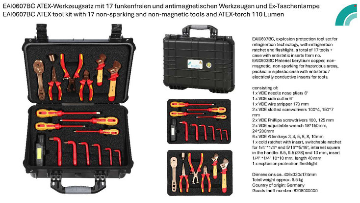 ATEX-Werkzeugsätze und Einzelwerkzeug aus funkenfreiem Material wie Beryllium-Kupfer und Aluminium-Bronze / ATEX tool kits and individual tools made from non-sparking materials such as beryllium copper and aluminum bronze